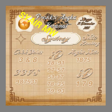 SYAIR PREDIKSI KELUARAN SYDNEY, 14-Des-2025